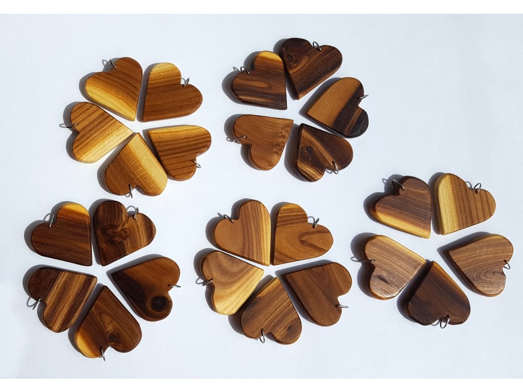 Velikost dřevěné části: šířka 33 mm, výška asi 31 mm (velikost a vzor na se u jednotlivých kusů mění, každý přívěšek je jedinečný).
